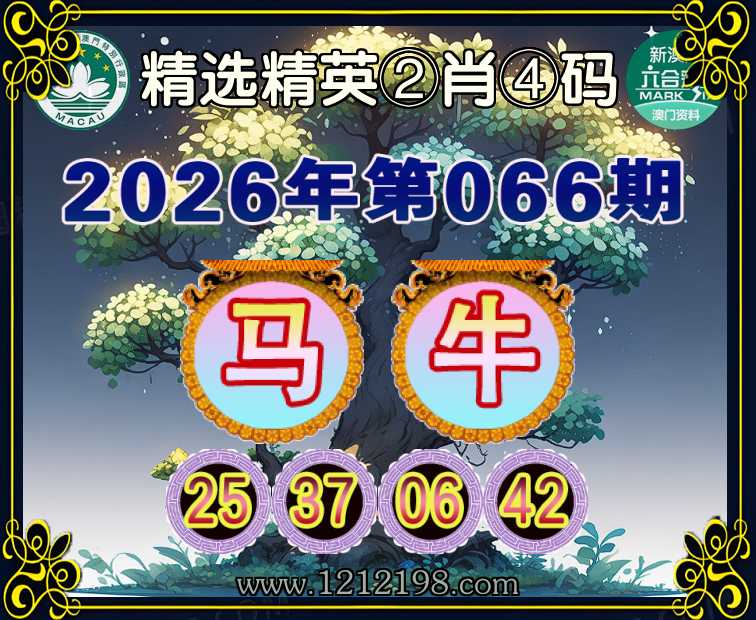 066期:《精选精英》 🤡②肖④码🤡【牛】【25.37.06.42】开:马37