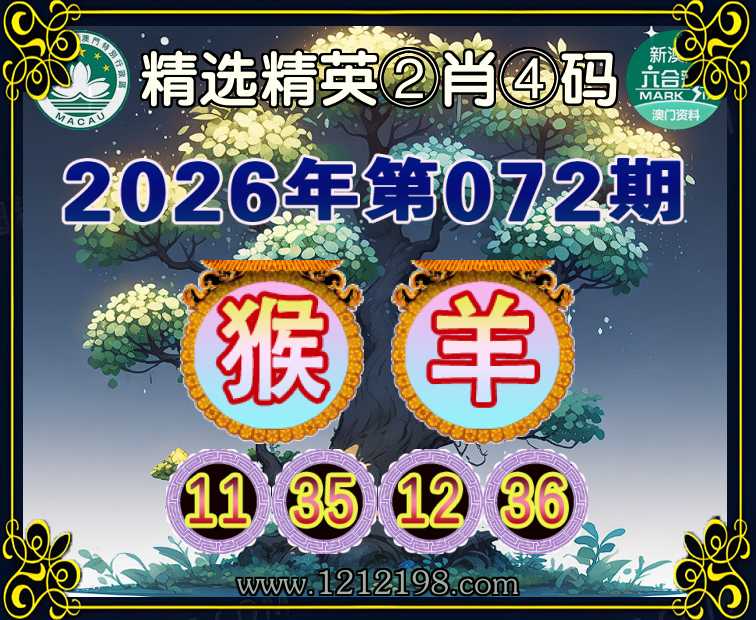 072期:《精选精英》 🤡②肖④码🤡【猴羊】【11.35.12.36】开:鸡46