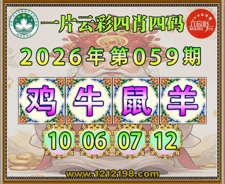 059期:『一片云彩』 🏅四肖四码🏅【牛鼠羊】【10.06.07.12】开:鸡10